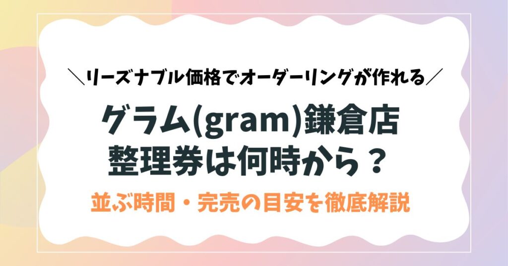 鎌倉で人気の体験型ジュエリーショップgram(グラム)は、特に週末になると多くの人が訪れ、整理券がすぐに配布終了してしまうこともあります。 「整理券は何時から並べば... -