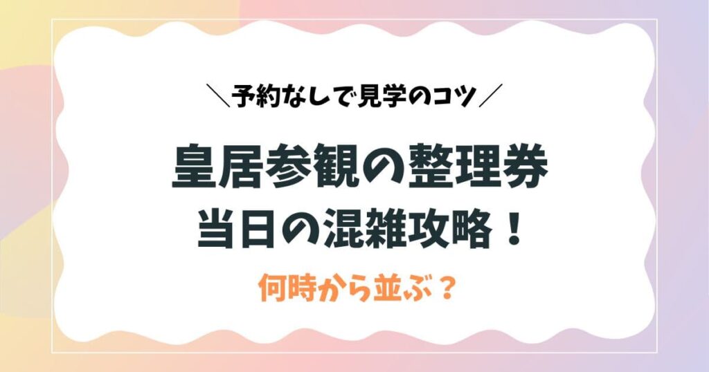 皇居を見学したいと思っても、「当日でも整理券は取れるのか」「何時から並ぶのが安心なのか」と不安に感じる方は多いのではないでしょうか。 特に人気の皇居参観は、日... -