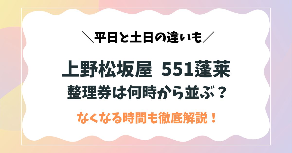 ここでは、上野松坂屋で開催される551蓬莱の整理券について疑問に答えていきます。